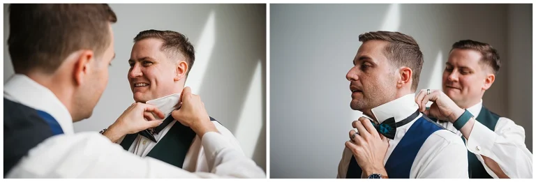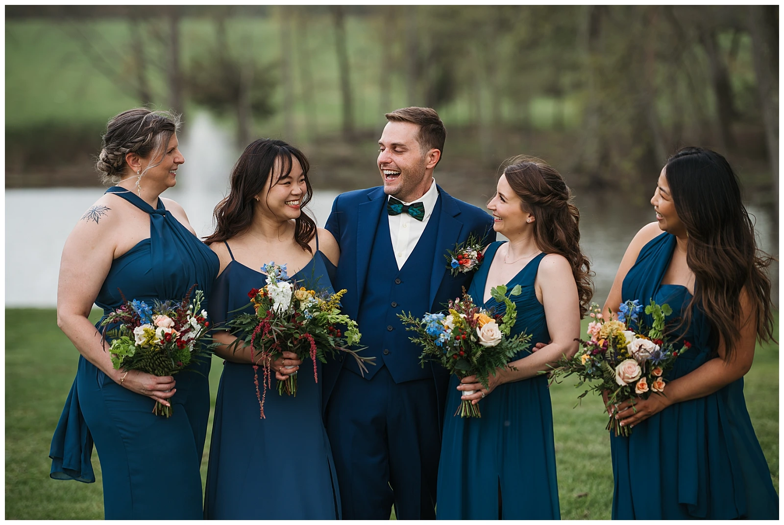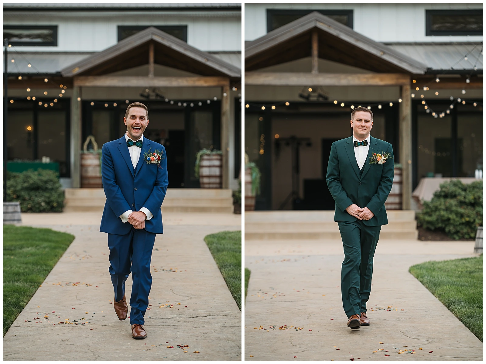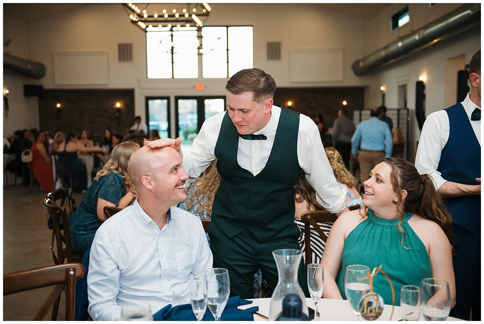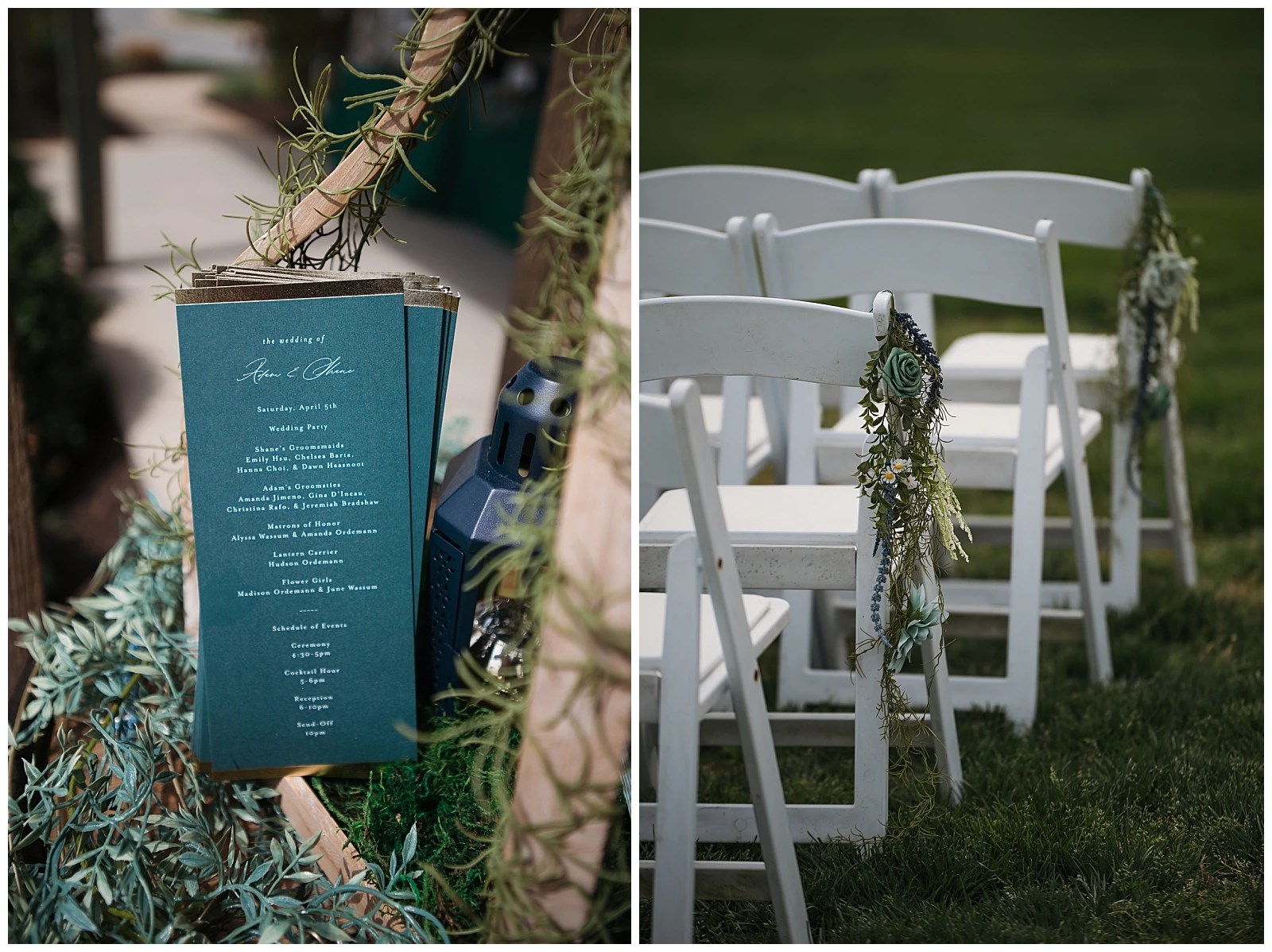 Set against the timeless charm of Oakdale, the couple chose a classic color palette of emerald green and navy blue. The rich tones felt elegant yet welcoming, perfectly reflecting Adam and Shane’s style refined, heartfelt, and deeply personal. As a pet friendly wedding, Oakdale allowed one very important guest to steal the show early on: their beloved dog, Otis.