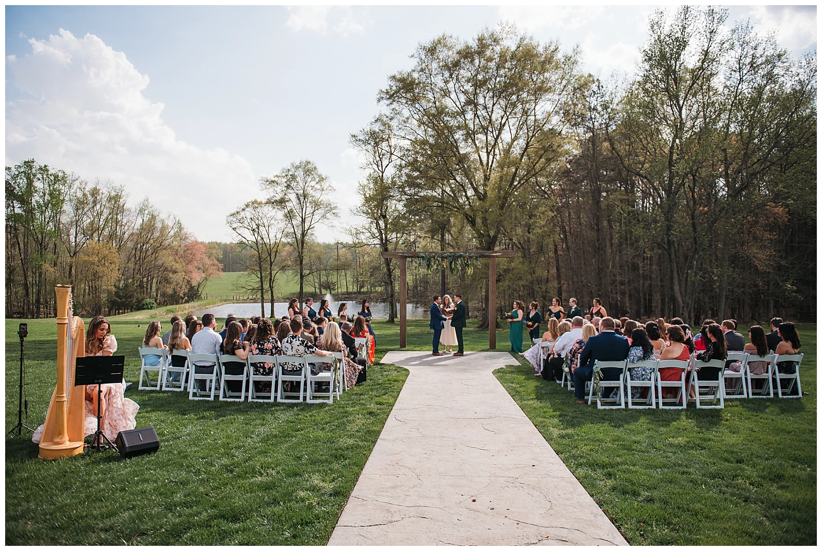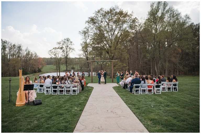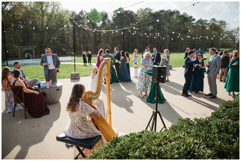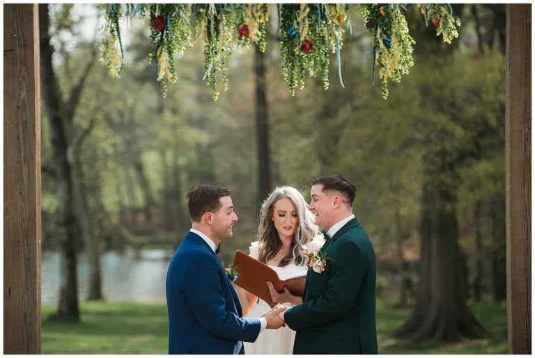 Adding to the emotional atmosphere, local harpist Christina Thomas provided live music during the ceremony. As Adam and Shane exchanged vows, she played beautiful harp renditions of songs by Shawn Mendes and Taylor Swift, giving modern love songs a soft, romantic twist. The music floated through the air and made the moment feel intimate, cinematic, and unforgettable.