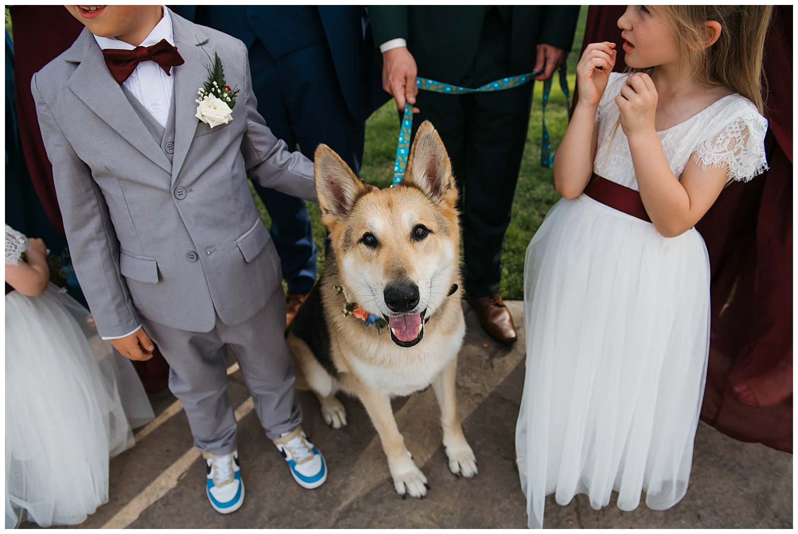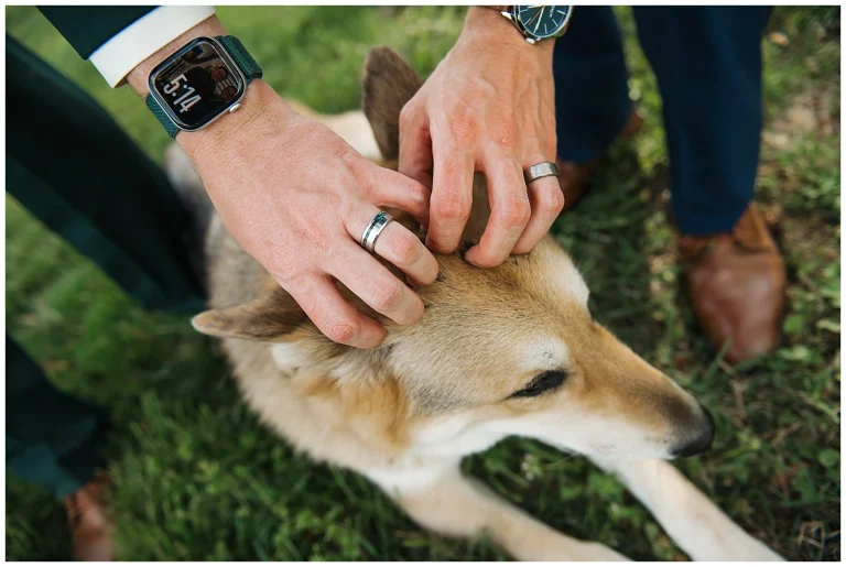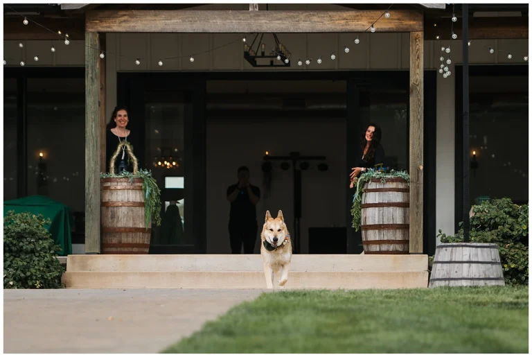 Otis was, without question, the star of the day. Loved by literally everyone in attendance, he proudly wore a collar adorned with flowers and pranced down the aisle with purpose, delivering the wedding bands attached to his collar. There were laughs, happy tears, and plenty of whispered “oh my gosh” moments as Otis did his very important job. If there was ever a moment that captured pure joy, this was it.