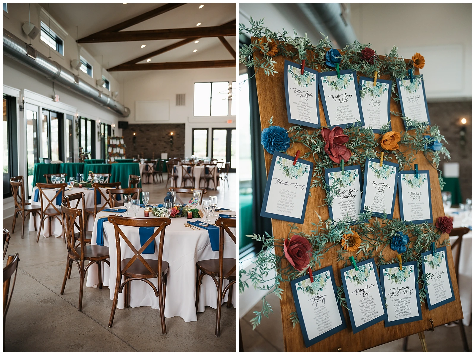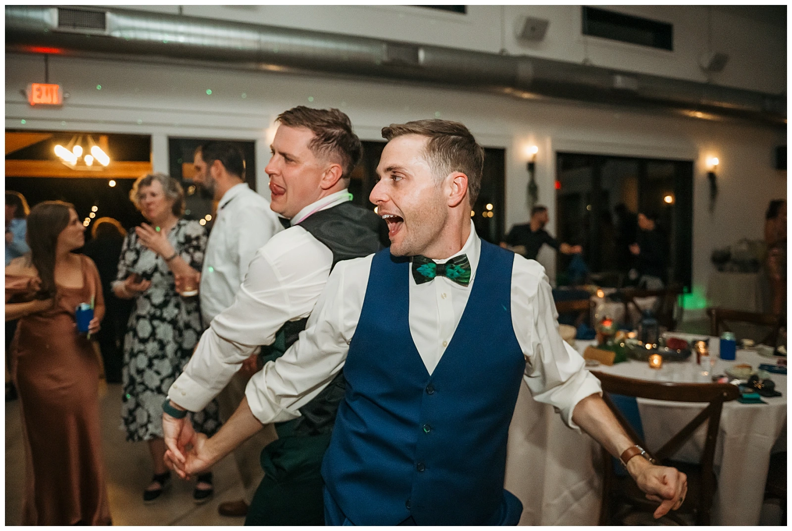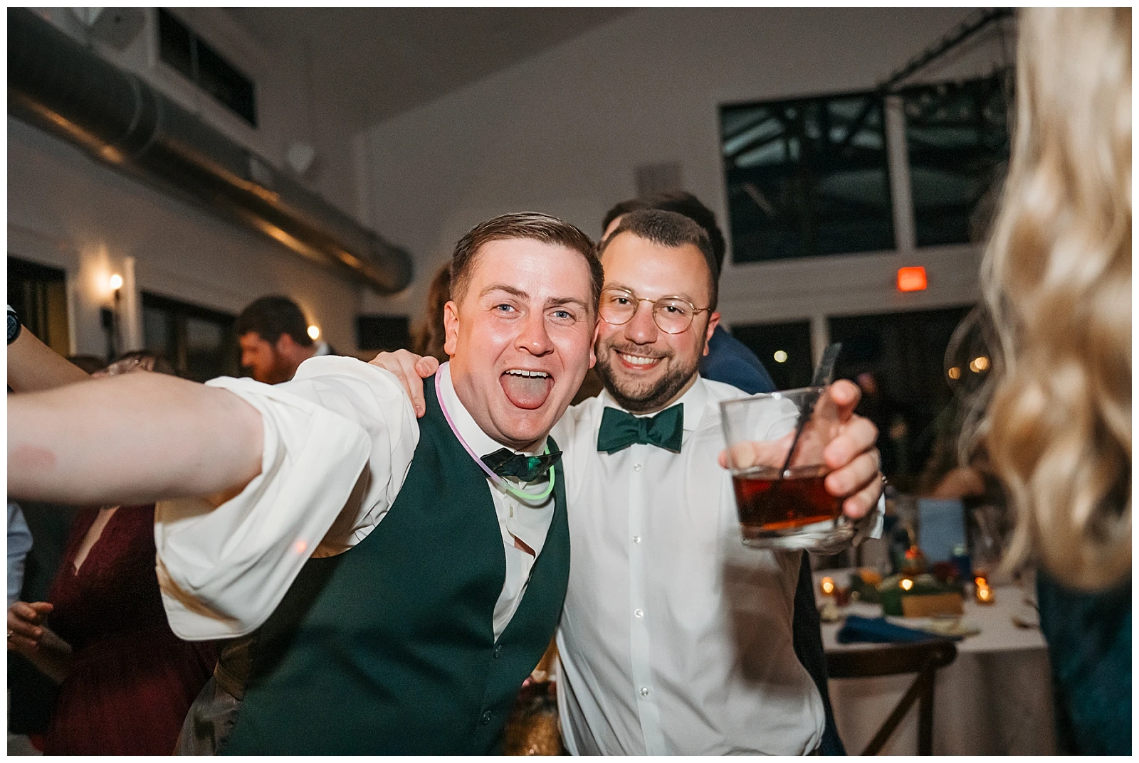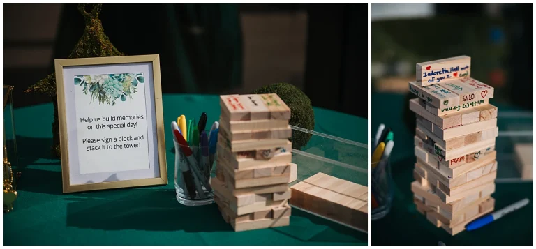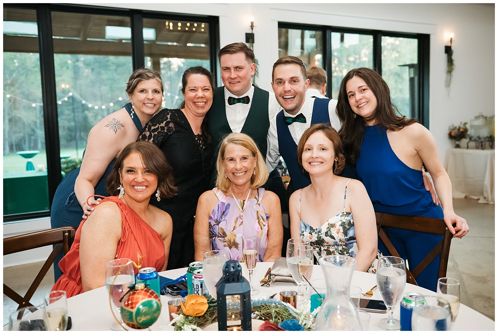 The reception continued the theme of meaningful details. Each table featured special Christmas ornaments displayed alongside handcrafted wooden plaques explaining the significance of the trips where the ornaments were collected. It was such a thoughtful way to share their story with guests. At every place setting, attendees found a handcrafted RVA ornament made by Adam and Shane themselves, a heartfelt keepsake and a personal thank-you to everyone who helped create their safe, loving community.
