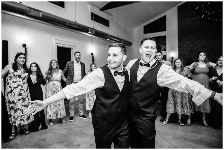 The ceremony itself was incredibly moving. Adam and Shane were surrounded by what they lovingly call their chosen family, friends and loved ones who have been their support system, their cheerleaders, and their safe place through every chapter. Nearly every guest was in tears, a testament to how deeply loved this couple is and how intentional they were about inviting only those who truly mattered. This wedding wasn’t just inclusive, it was affirming, warm, and overflowing with love.