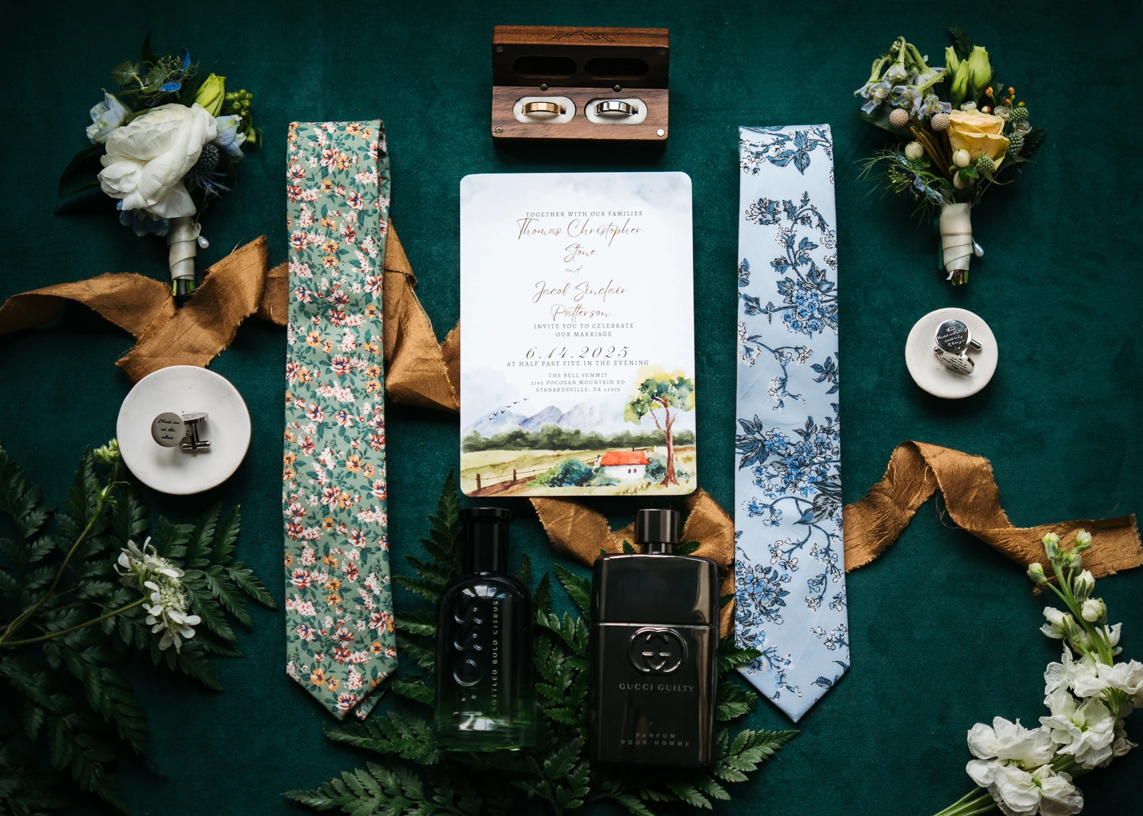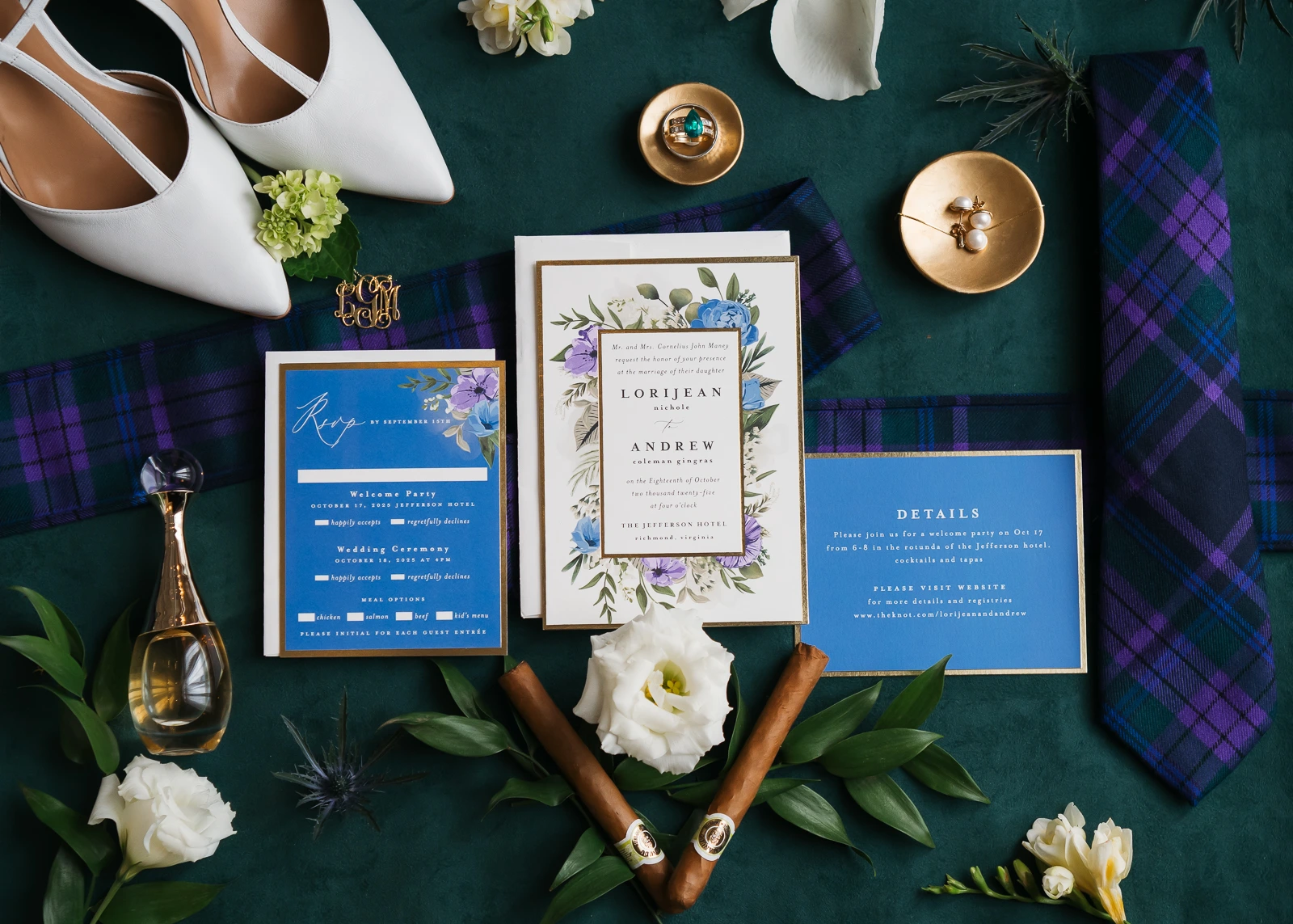 something borrowed something blue wedding stationary flatlay detail photo